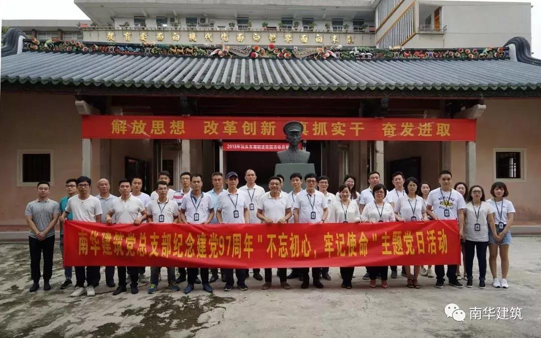 為紀(jì)念中國共產(chǎn)黨成立97周年,發(fā)揮黨組織的戰(zhàn)斗堡壘和廣大黨員的先鋒模范作用,并結(jié)合上級(jí)黨委要求深入學(xué)習(xí)貫徹習(xí)近平總書記重要講話精神和對(duì)廣東工作一系列指示的精神,南華公司黨總支部經(jīng)研究決定,以“不忘初心、牢記使命”為主題,結(jié)合“三會(huì)一課”制度, 6月29日下午,公司領(lǐng)導(dǎo)攜行政支部全體黨員、入黨發(fā)展對(duì)象、申請(qǐng)人員及青年團(tuán)員到汕頭市同文學(xué)堂進(jìn)行參觀學(xué)習(xí),開展重溫入黨誓詞、重溫革命歷史、傳承紅色基因?yàn)閮?nèi)容的主題黨日活動(dòng)。